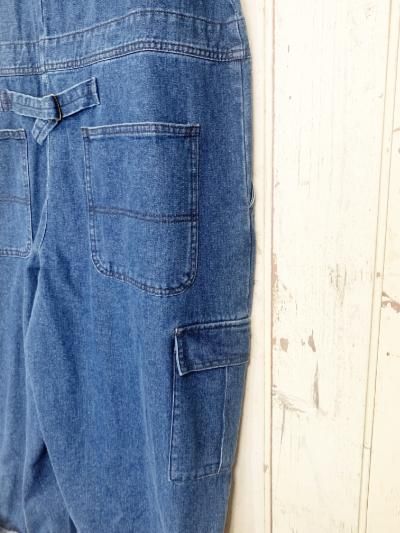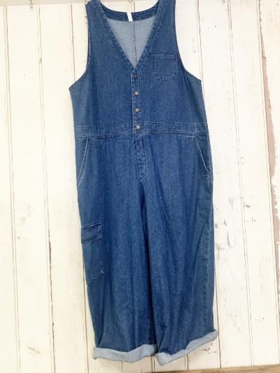 ワークディテールを取り入れたデニムサロペットは、ゆったりとしたワイドシルエット