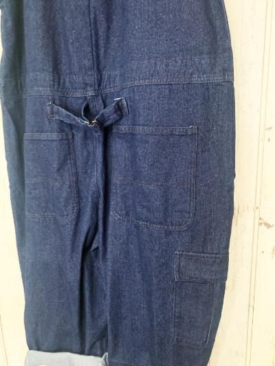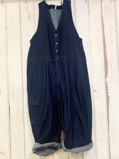ワークディテールを取り入れたデニムサロペットは、ゆったりとしたワイドシルエット